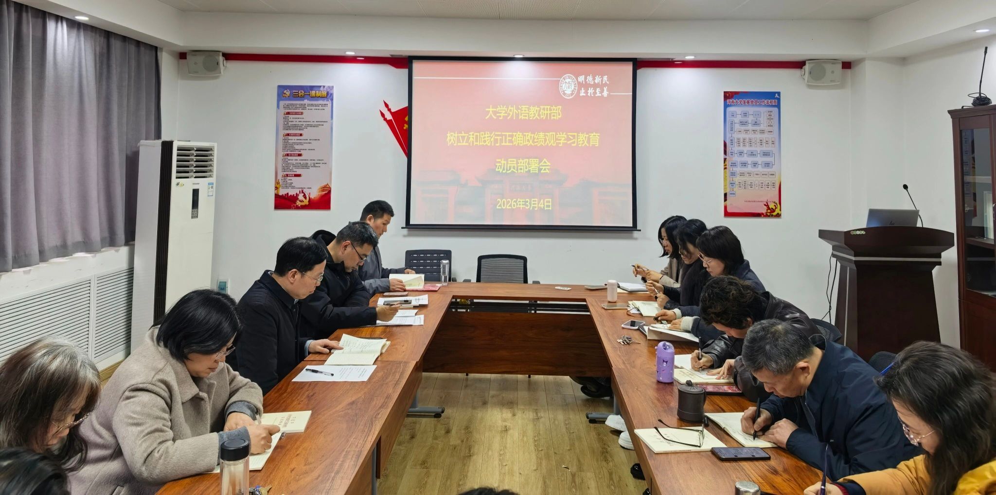 3月4日下午,大学外语教研部召开树立和践行正确政绩观学习教育动员部署会。部党委委员、领导班子成员、各支部书记、支部委员参加会议。